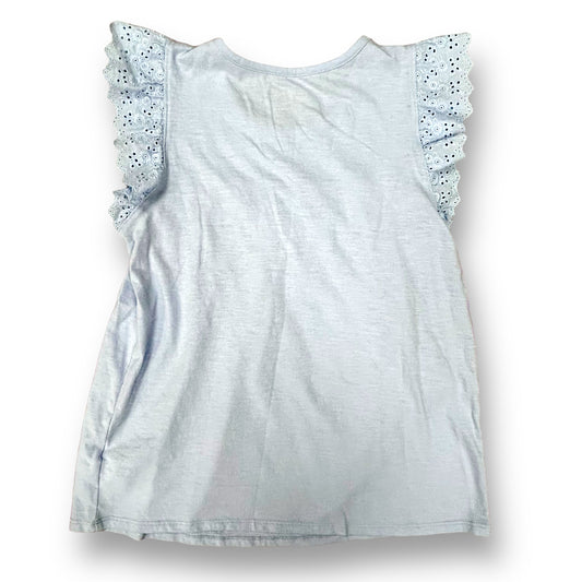 Youth Girls Size 10/12 Baby Blue Eyelet Lace Flutter Sleeve Cotton Blouse