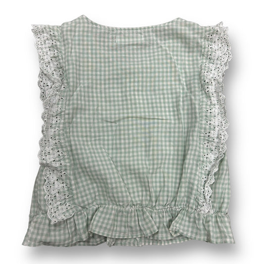 Zara Girls Size 14 Youth Sage Green Gingham Sleeveless Eyelet Lace Blouse