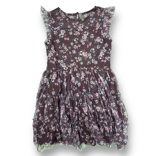 Zenzi Girls Size 14/16 Youth Plum Floral Print Flutter Sleeve Dress with Overlay