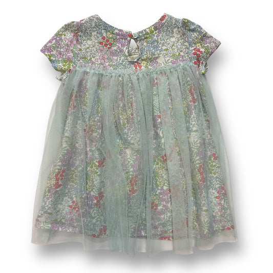 Baby Gap Dress 12-18 Months Girls Floral Print Short Sleeve with Tulle Overlay