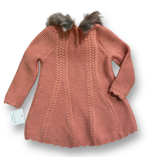 NEW! Tahari Baby Girl Size 6-9 Months Peach Knit Fur Lined Sweater Dress