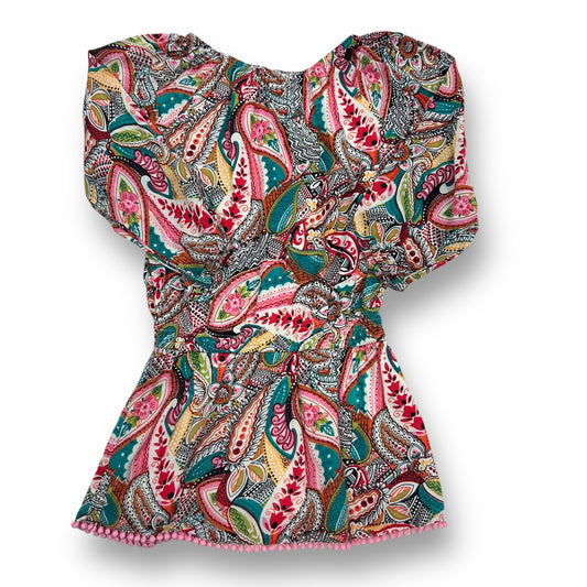 Mimi & Maggie Girls Size 5 Long Sleeve Blouse Paisley Print Pom Lined Tunic