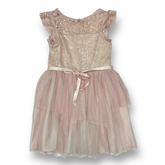 Girls Size 7/8 Pink Blush Lace & Tulle Flutter Sleeve Tutu Dress with Ribbon