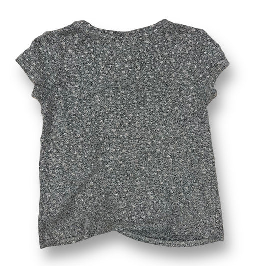 More than Magic Girls Size 6/6X Shimmery Gray Knit Short Sleeve Knotted Blouse