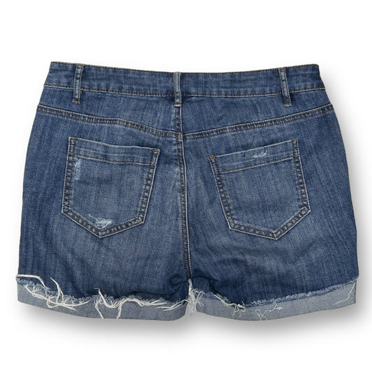 Women's Small Maternity Jean Shorts Distressed Denim Cutoffs with Elastic Waist