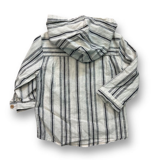 Toddler Boy Size 18 Months Linen Blend Long Sleeve Button Up Hoodie Shirt