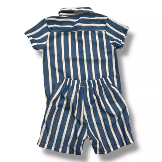 Boys Size 3/3T Blue & White Striped Silky Collared Shirt & Shorts Set