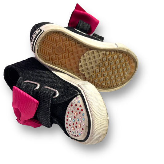 Girls Slip On Sneakers Size 7 Toddler Dark Blue Denim Tennis Shoes with Bows