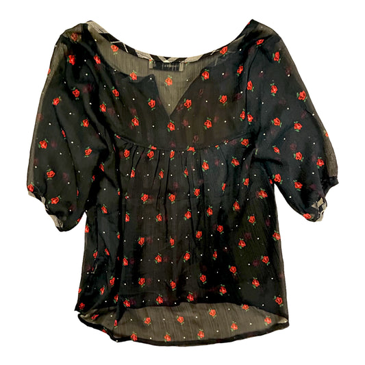 Women's Abercrombie Babydoll Blouse Size Small Sheer Navy Loose Fit Button Top