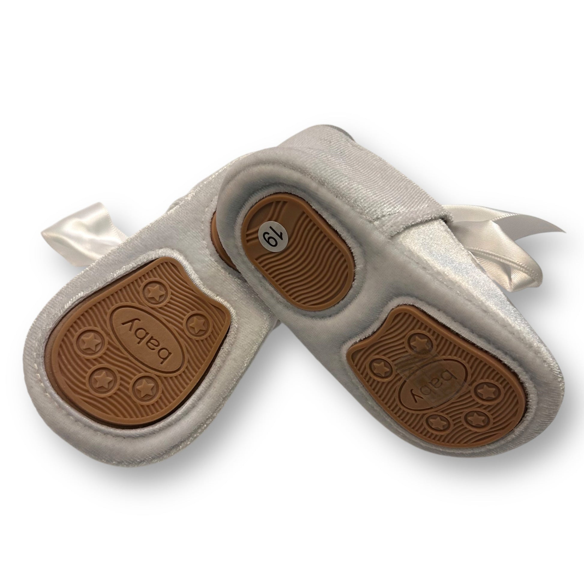 New! Baby Girl Shoes Size 2 White Velvet Satin Ribbon Christening Slippers