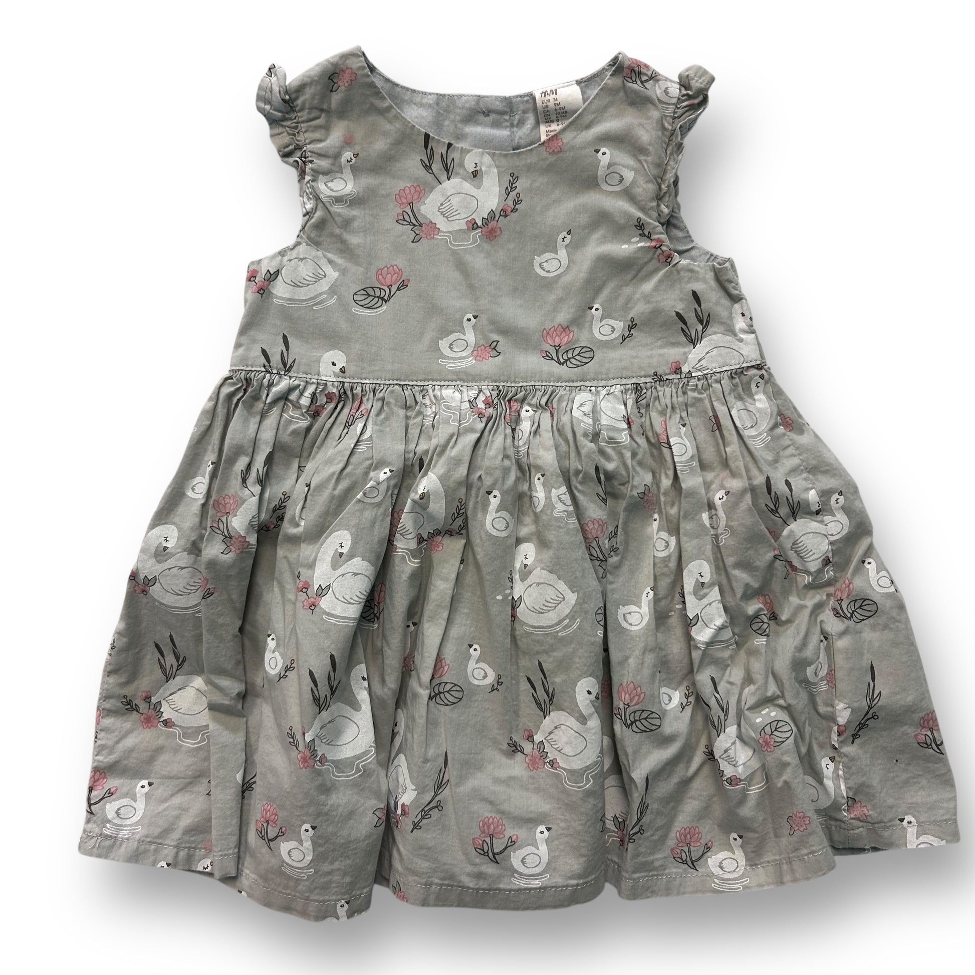 H&M Baby Girl 9 Months Sundress Gray Swan Print Lightweight Sleeveless Dress