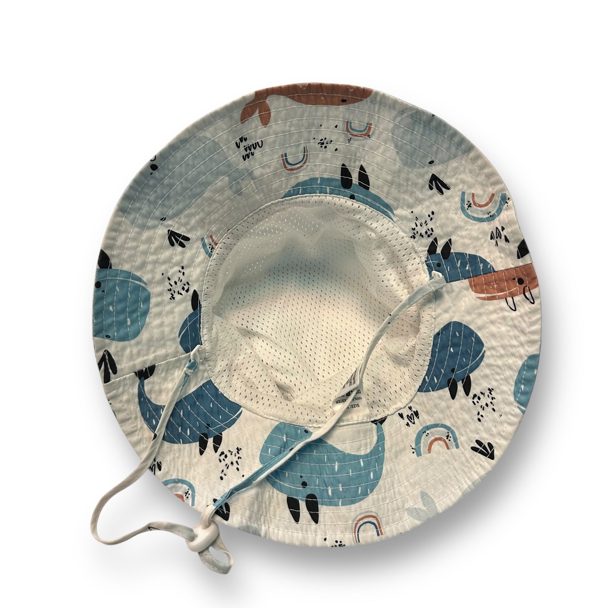 Toddler Boy Bucket Hat Whale Print Adjustable Chin Strap with Meshing Lining