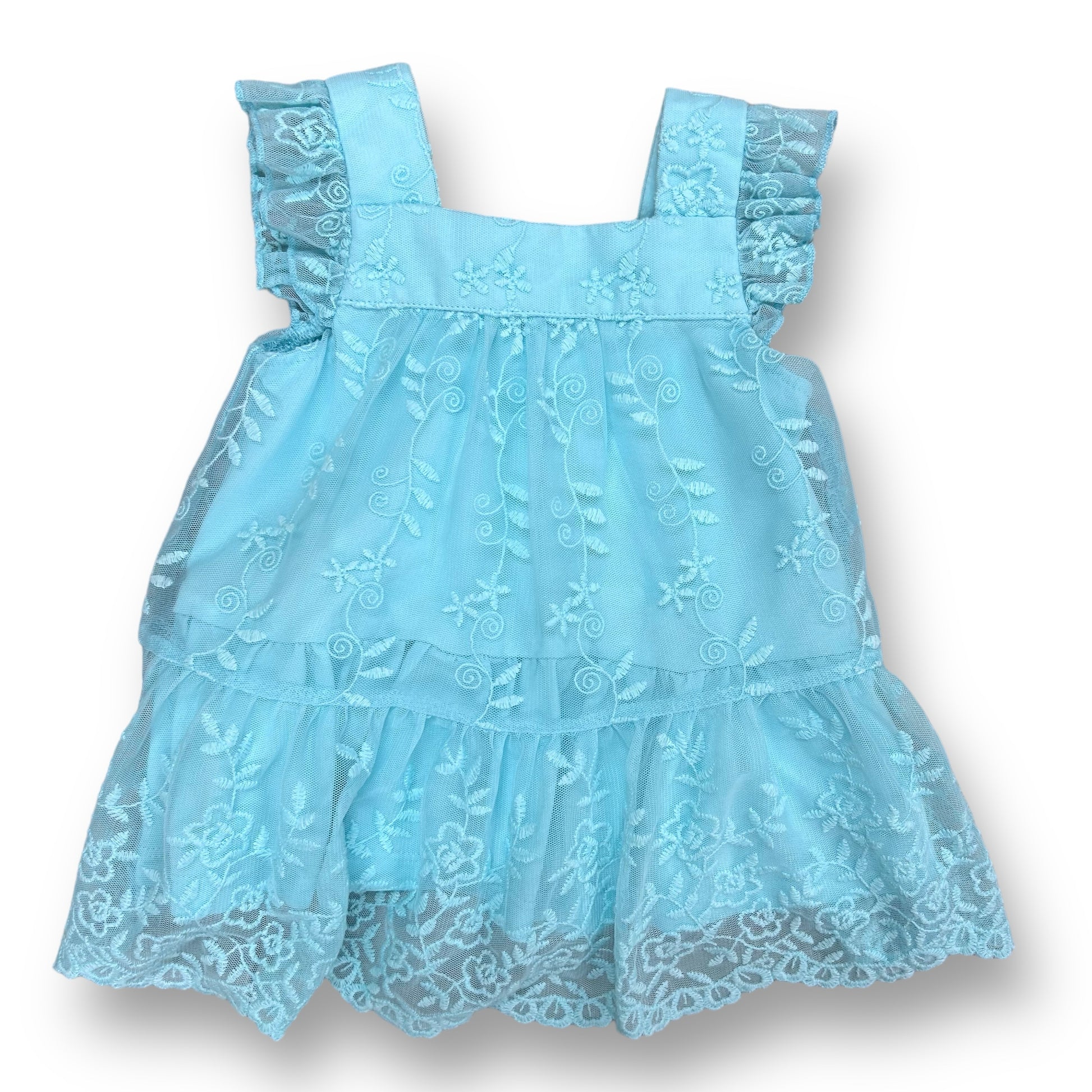 - Girls Koala Kids Size 6-9 Months Aqua Embroidered Lace Sun Dress