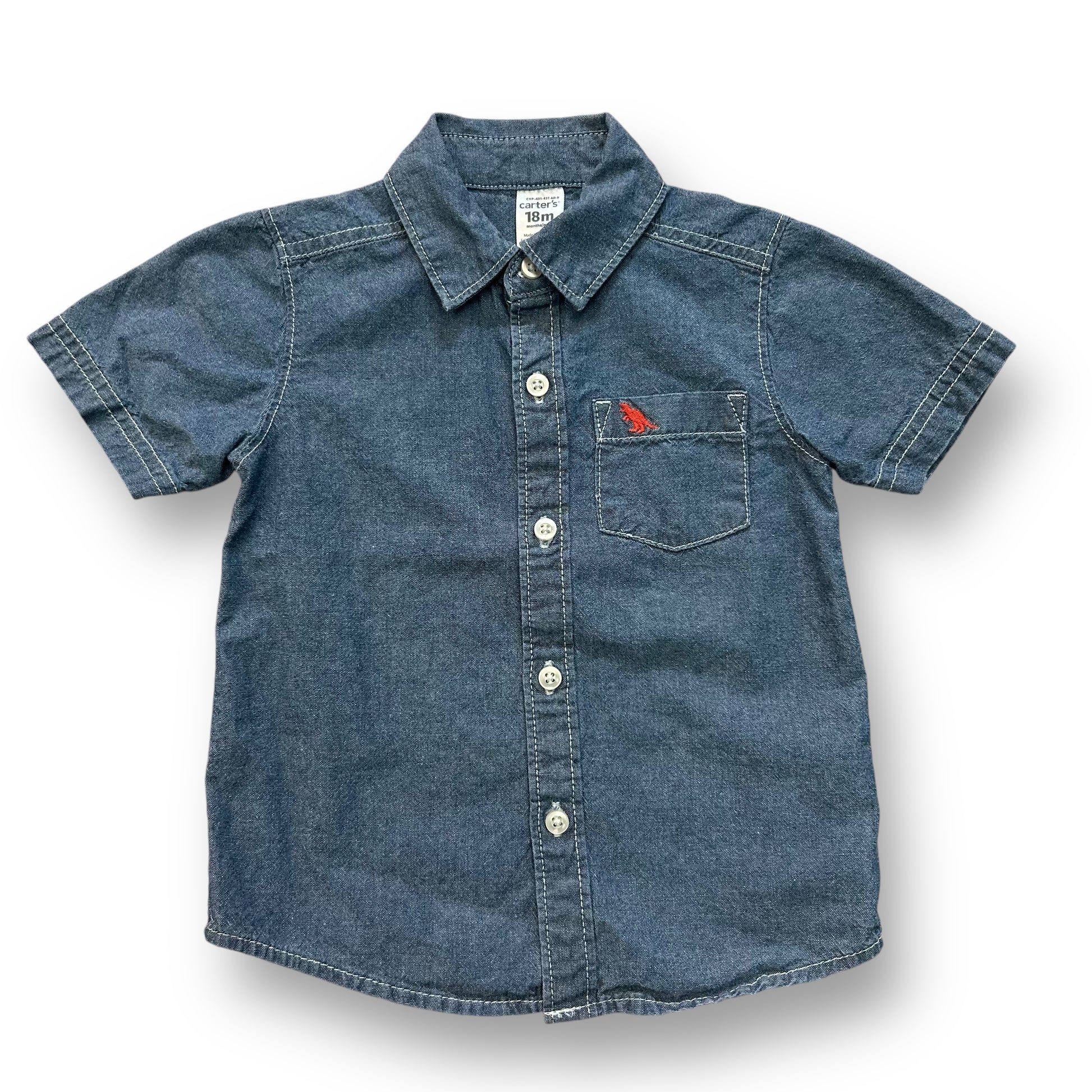Boys Denim Button Up Shirt Carter's Size 18 Months Short Sleeve Collared Top