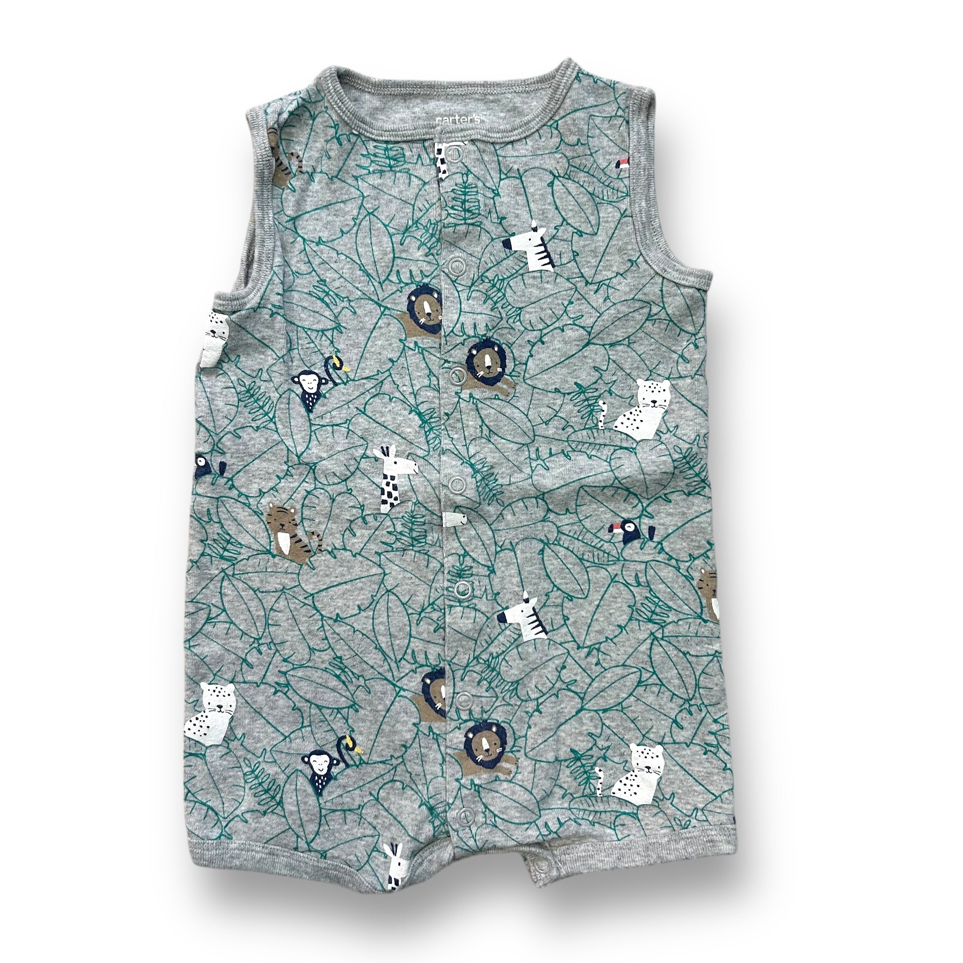 Boys Carter's Size 18 Months Gray Safari Animals Snap Up Romper