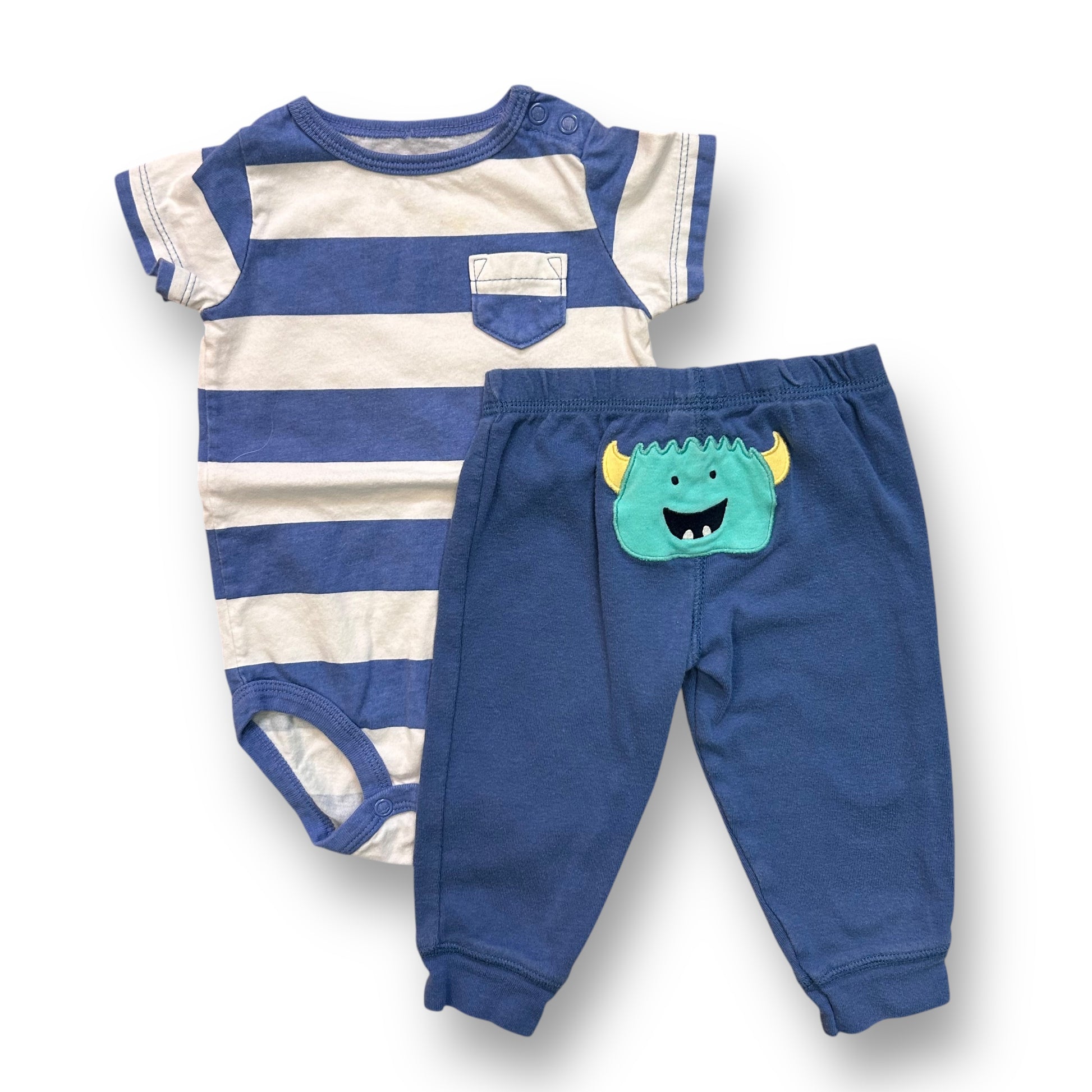 Carter's Size 9 Months Baby Boy Outfit Blue & White Snap Bottom 2-Piece Set