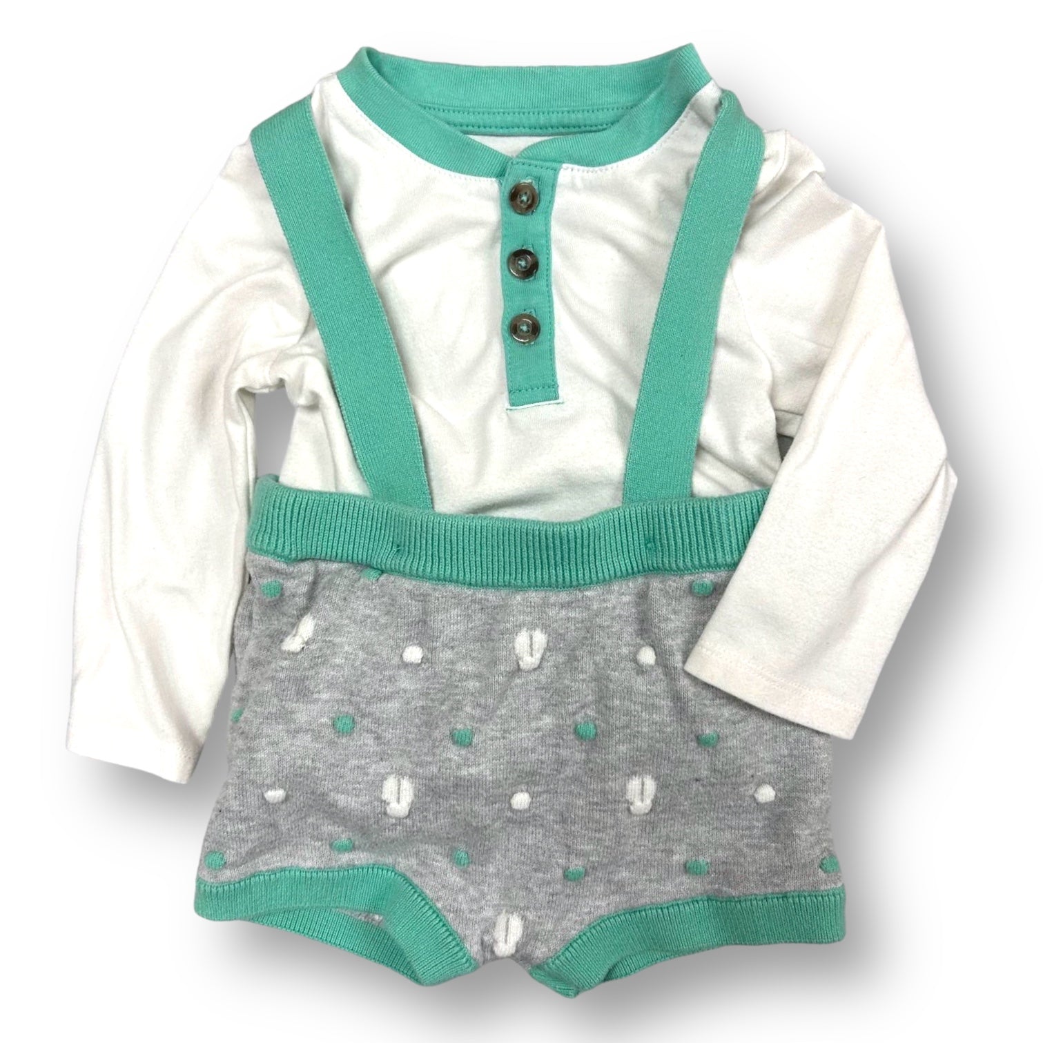 Cat & Jack Boys Size 12 Months Outfit Overall Shorts with Henley Bodysuit