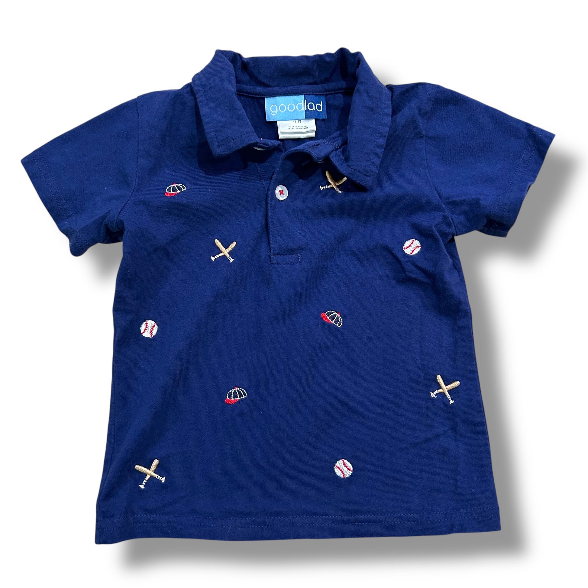 Goodlad Boys Size 3/3T Polo Navy Embroidered Baseball Collared Shirt