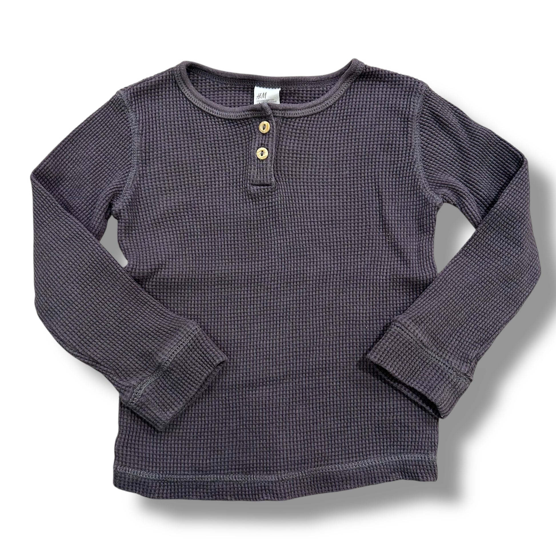 H&M Boys Size 3T Dark Gray Cotton Thermal Long Sleeve Henley Shirt