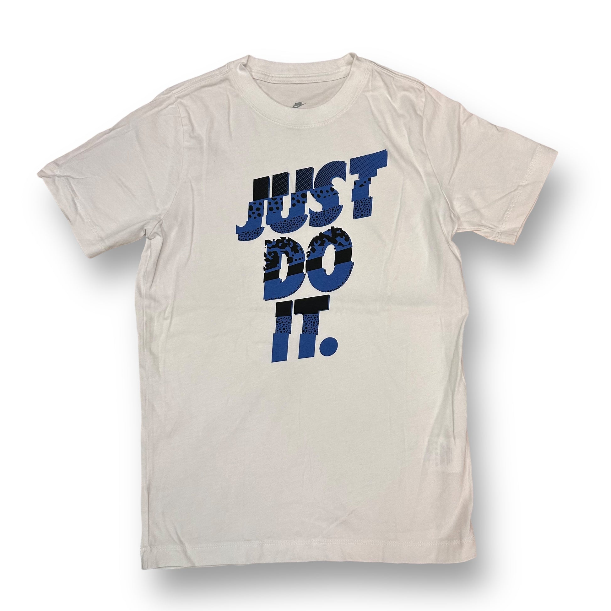 Boys Nike Size 10/12 YMD White & Blue Just Do It Short Sleeve Shirt