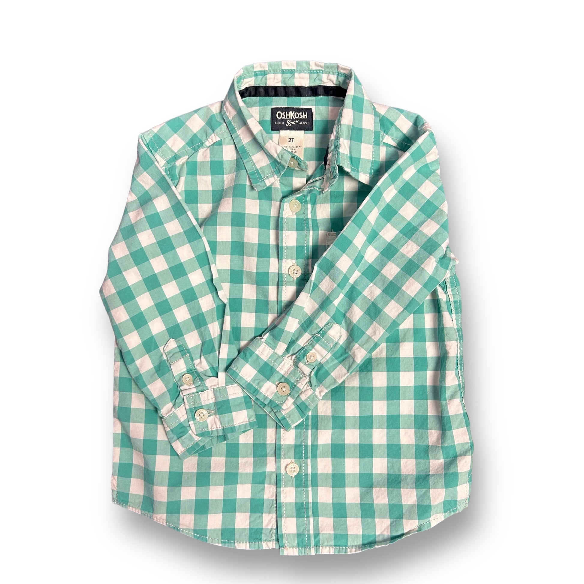 OshKosh Boys Size 2T Green & White Checkered Long Sleeve Button Up Shirt