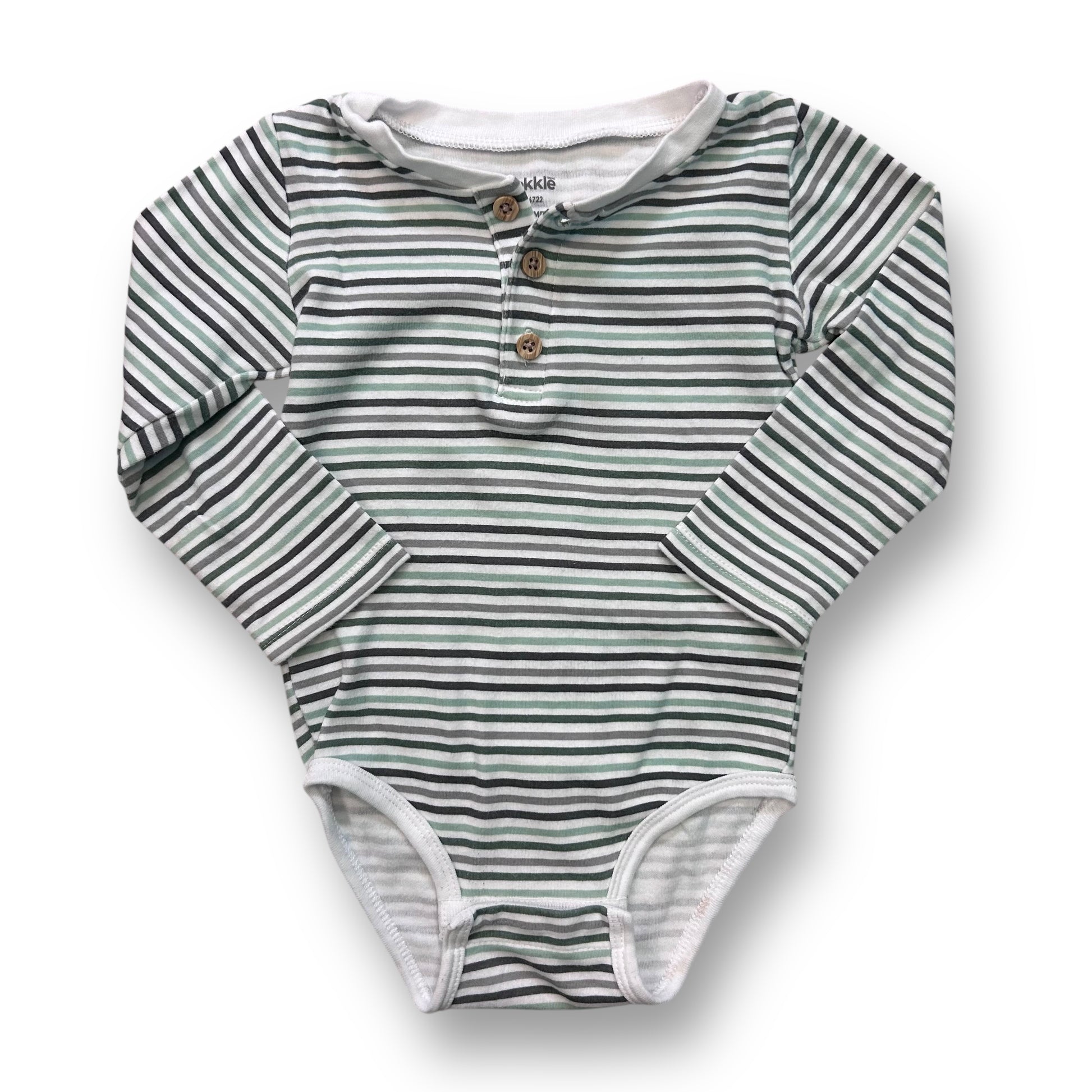 Pekkle Boys Size 18 Months Green & Gray Striped Long Sleeve Henley Bodysuit