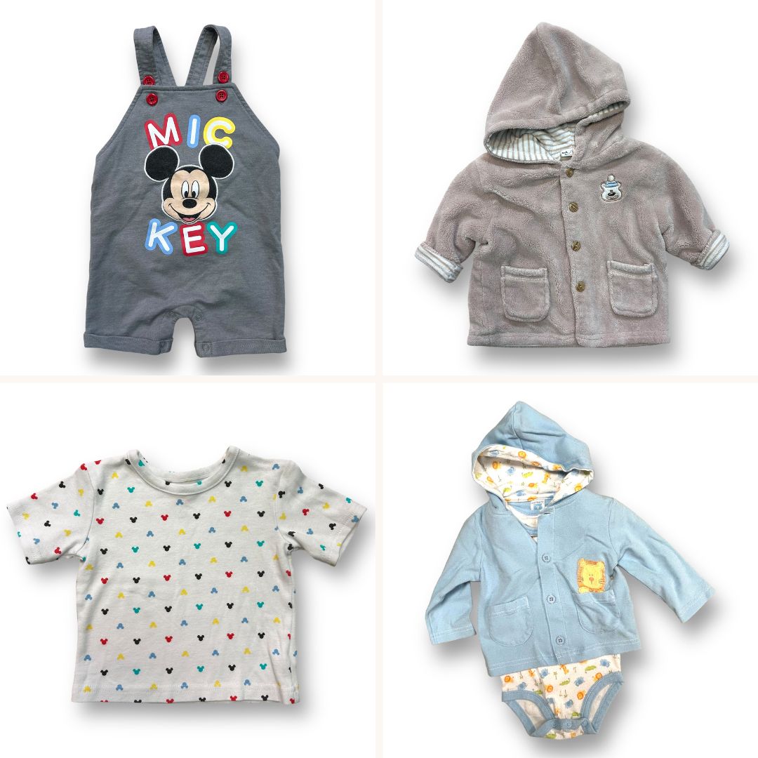 - Boys Disney Baby Size 12 Months Gray Mickey Mouse Shortalls
