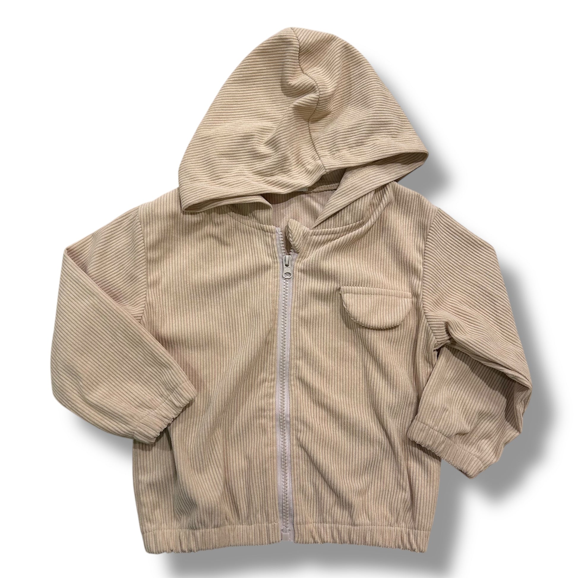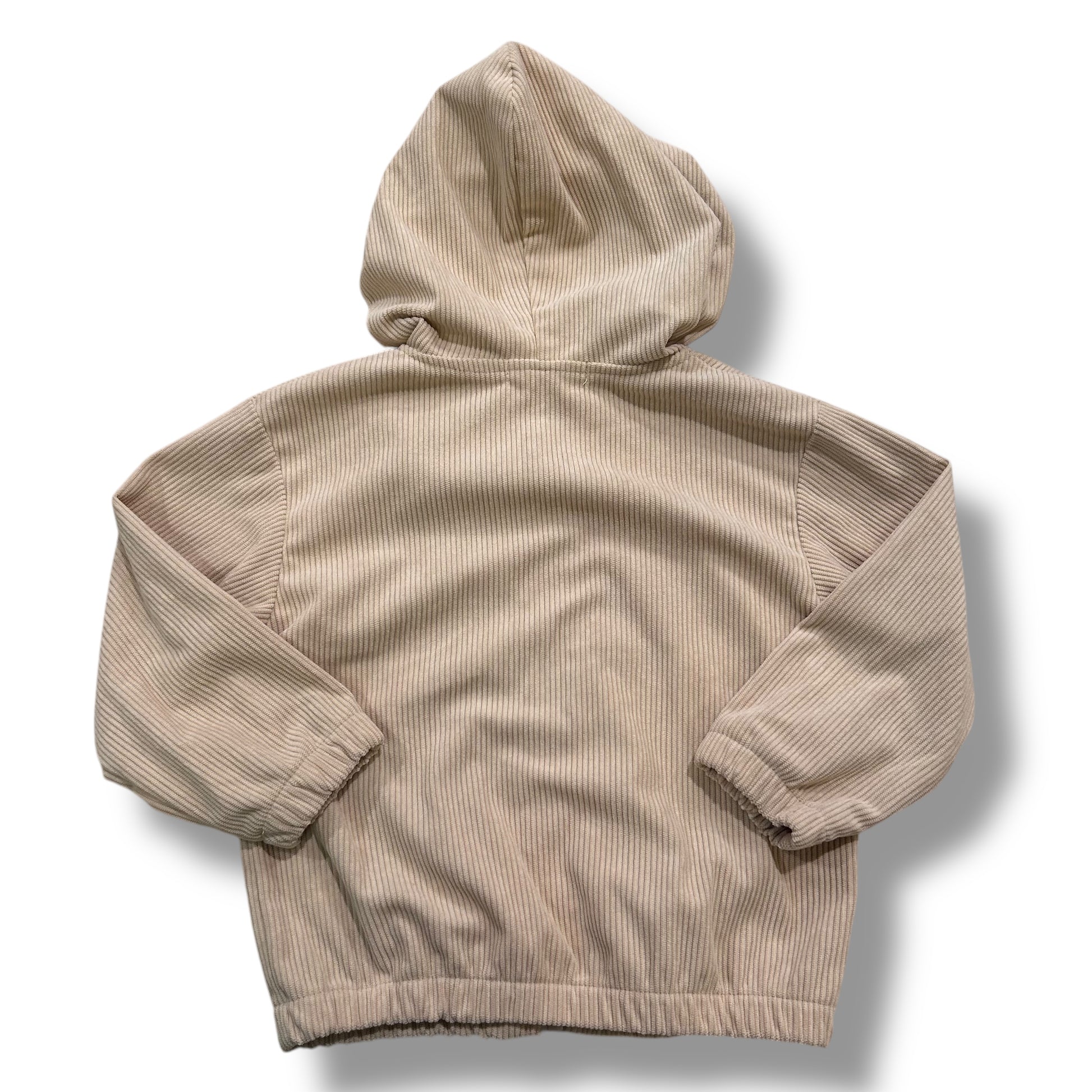 Boys Size 3/3T Light Beige Soft Ribbed Zip-Up Hoodie Jacket