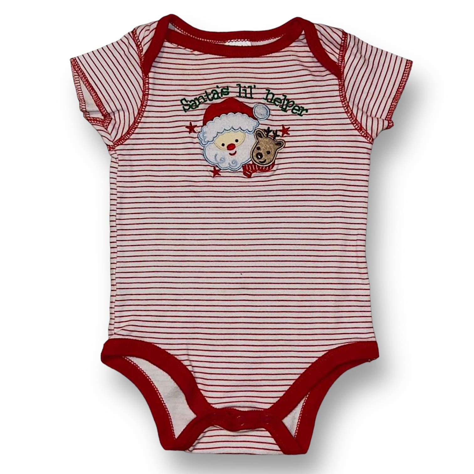 Baby Boy Size 6-12 Months Embroidered Santa's Little Helper Christmas Romper