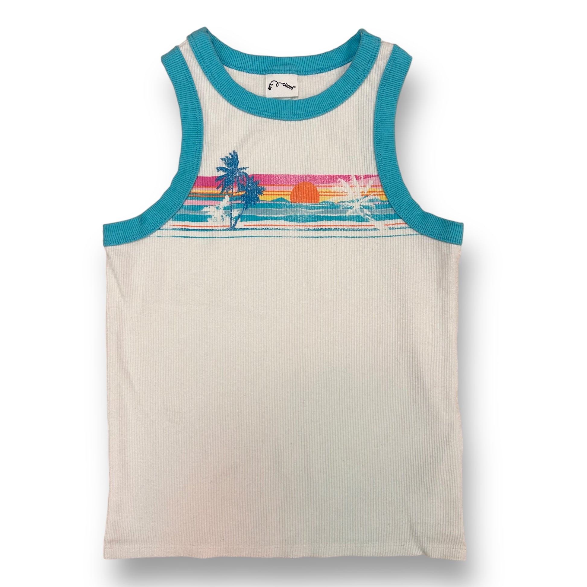 Girls Size 10/12 Youth Art Class White Ribbed Beach Tank Top