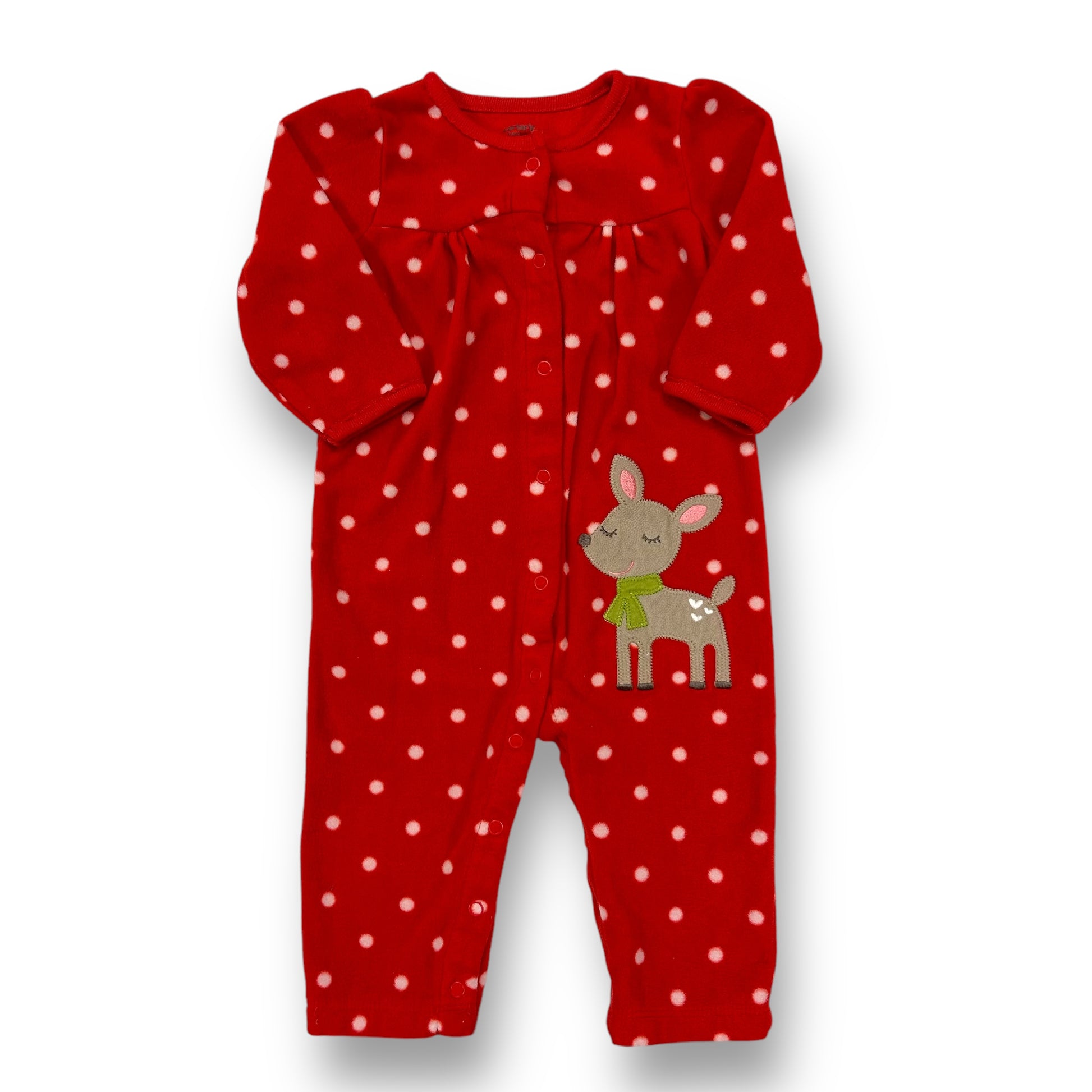 Girls Carter's Size 12 Months Red & White Polka Dot Reindeer Fleece One-Piece