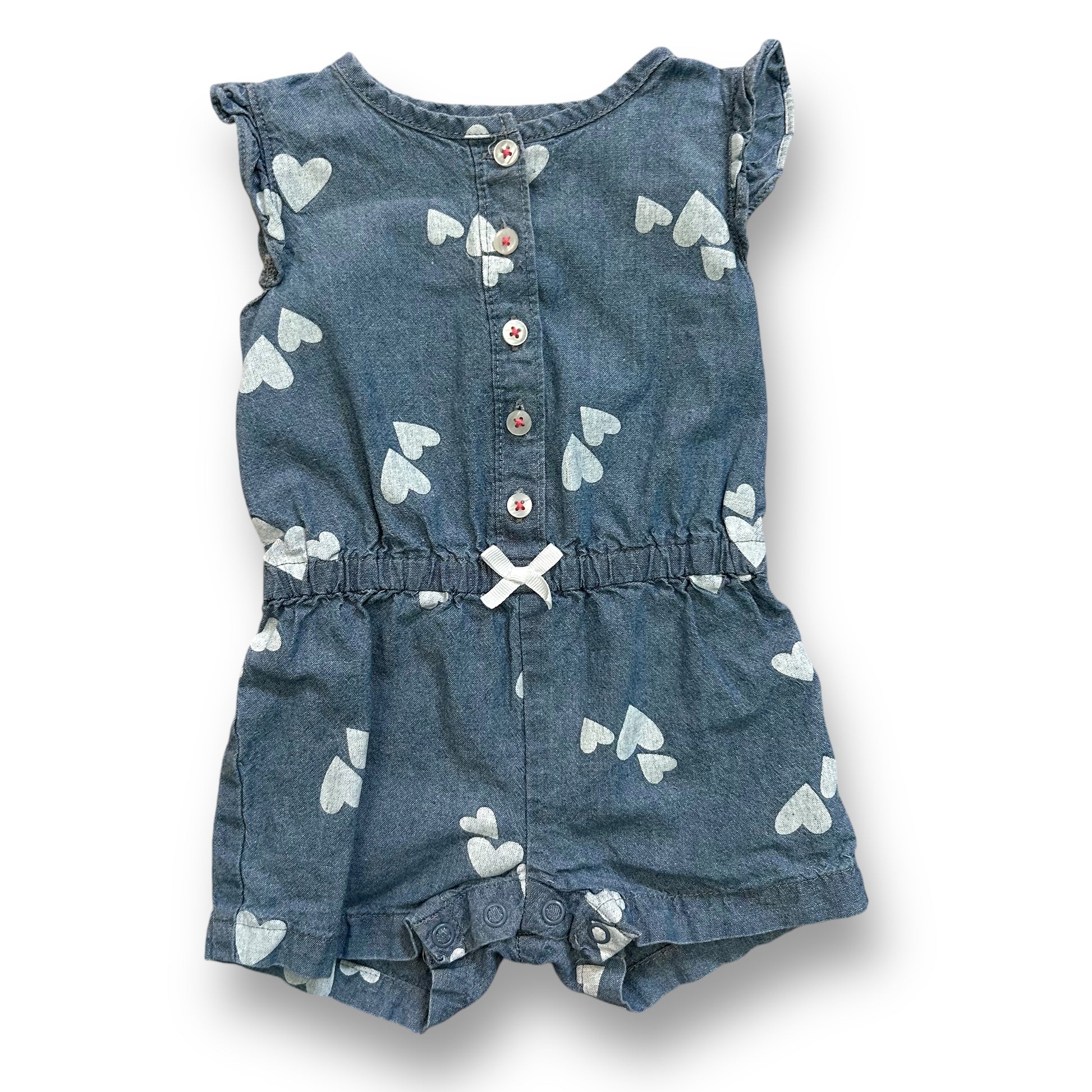 Girls Carter's Size 6 Months Denim Heart Print Button Romper