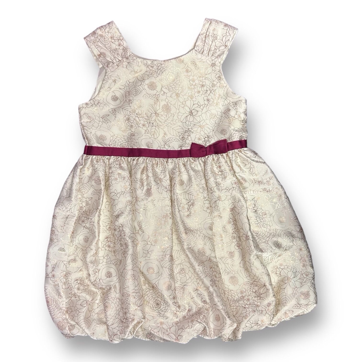 Girls Size 5T Shimmer Gold Floral Print Ivory Sleeveless Silky Dress