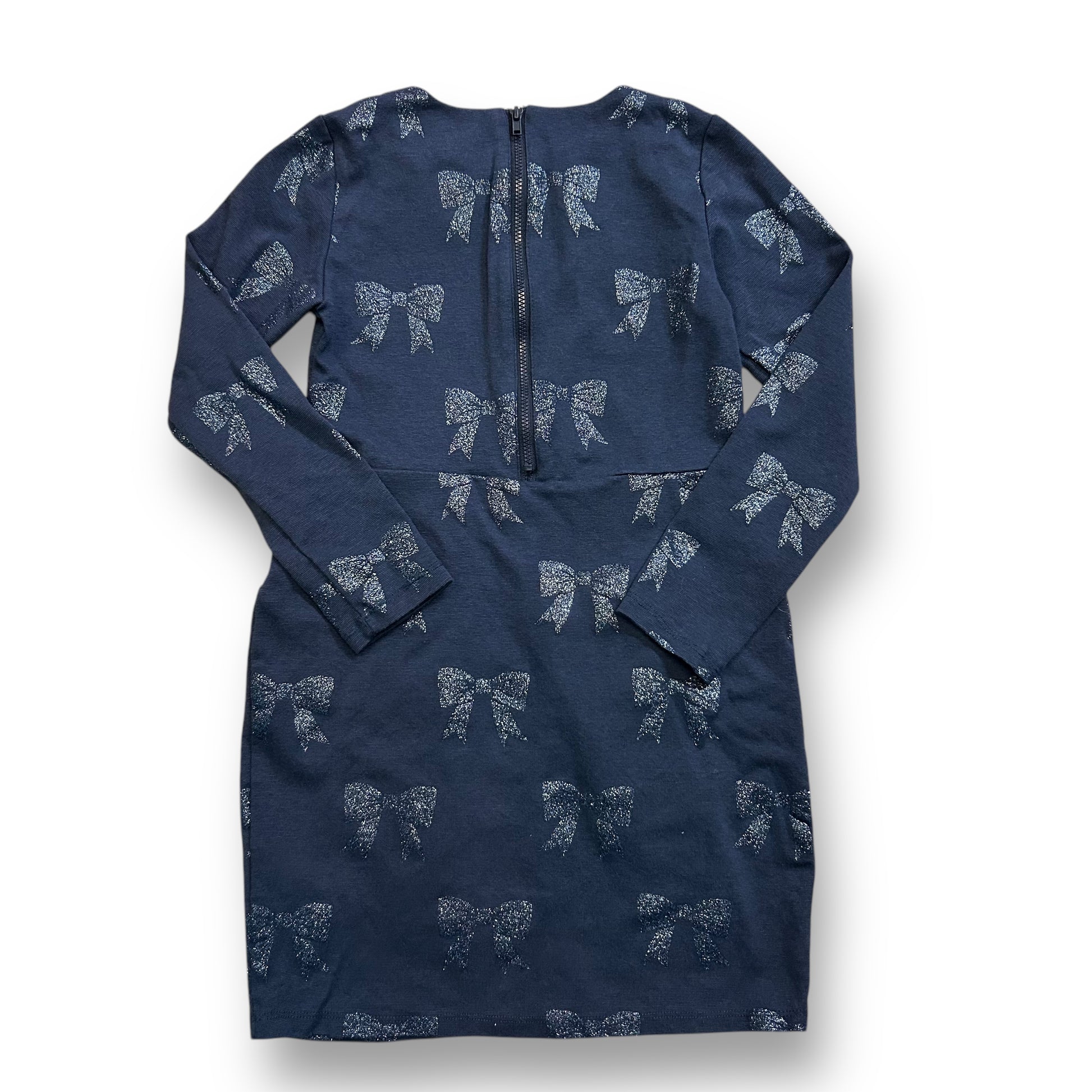 H&M Girls Size 6-8 Navy Blue Shimmery Bows Quarter-Zip Long Sleeve Dress