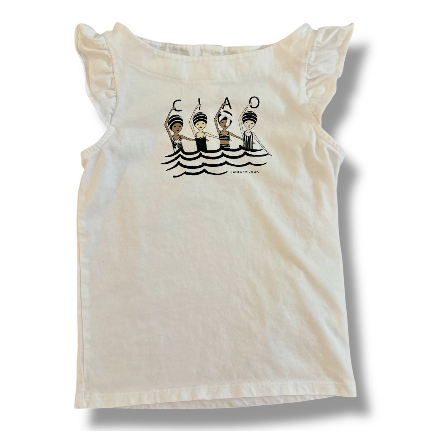 Janie and Jack Girls Size 7 CIAO Summery White Flutter Sleeve Top