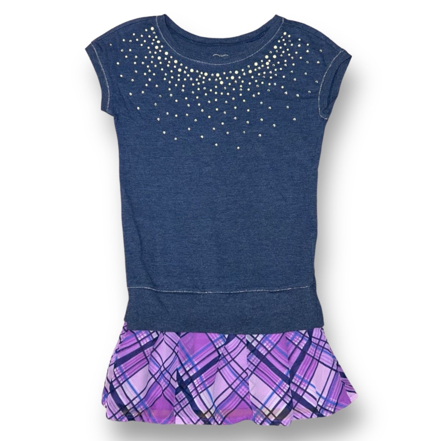 Justice Youth Girl Size 10 Embellished Plaid Skirted Full Length Blouse