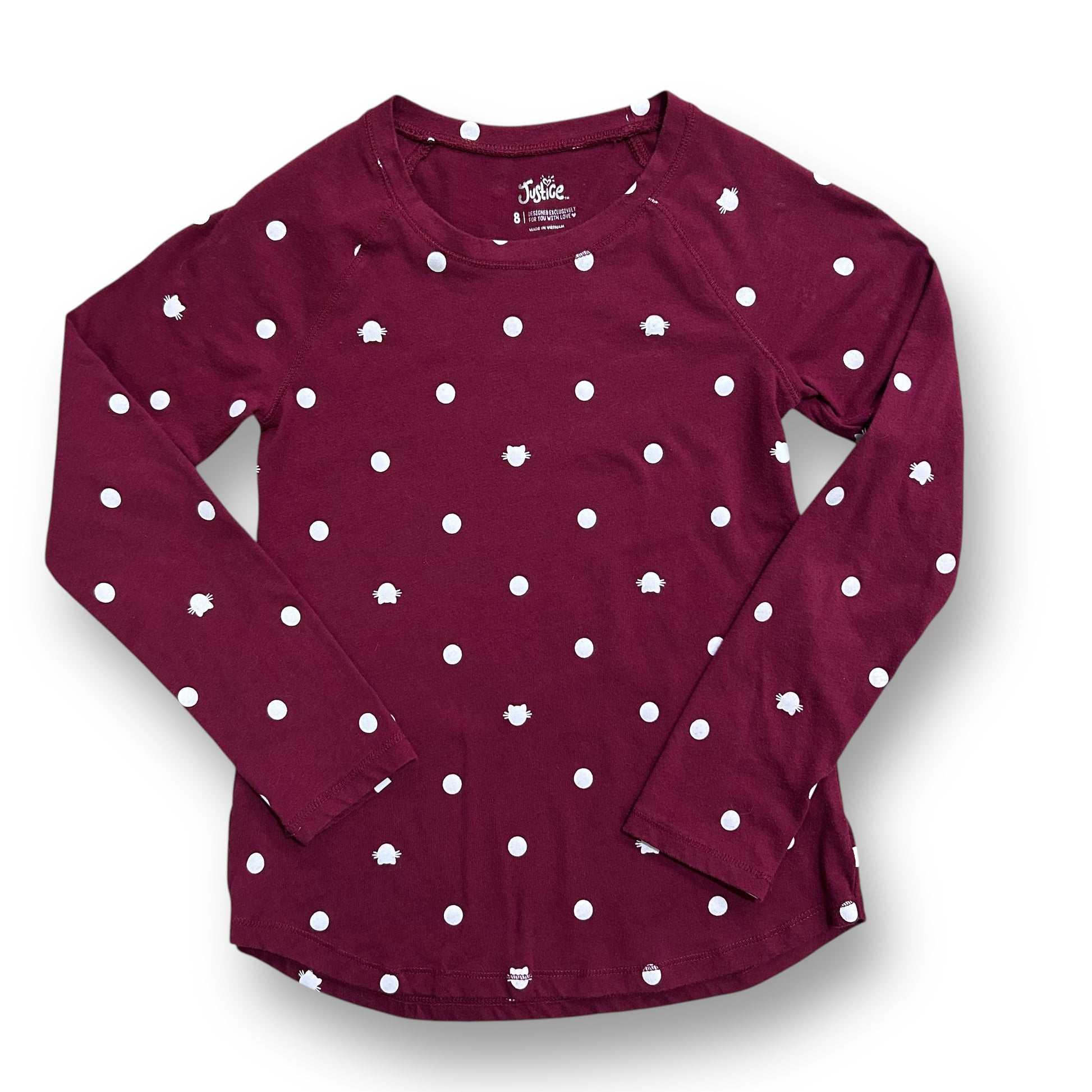 Justice Girls Size 7 Long Sleeve Shirt Maroon Kitty Print Top