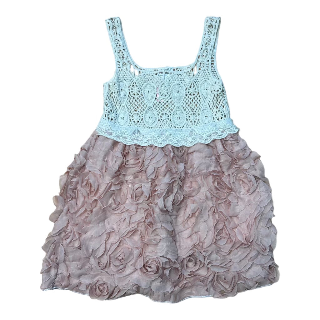 Girls Size 6/7 Pink Blush & Ivory Rosette Sleeveless Blouse
