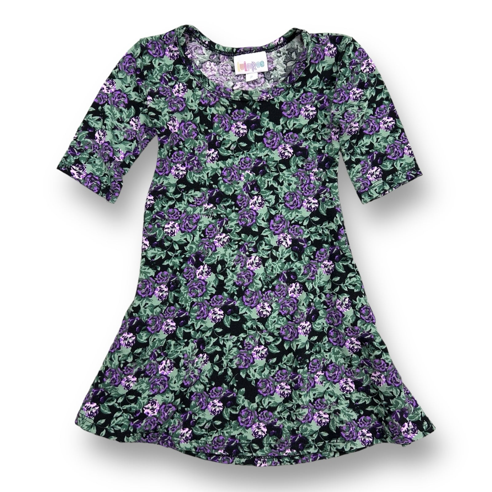 Lularoe Kids Size 2 Girls Floral Print 3/4 Sleeve Twirl Dress