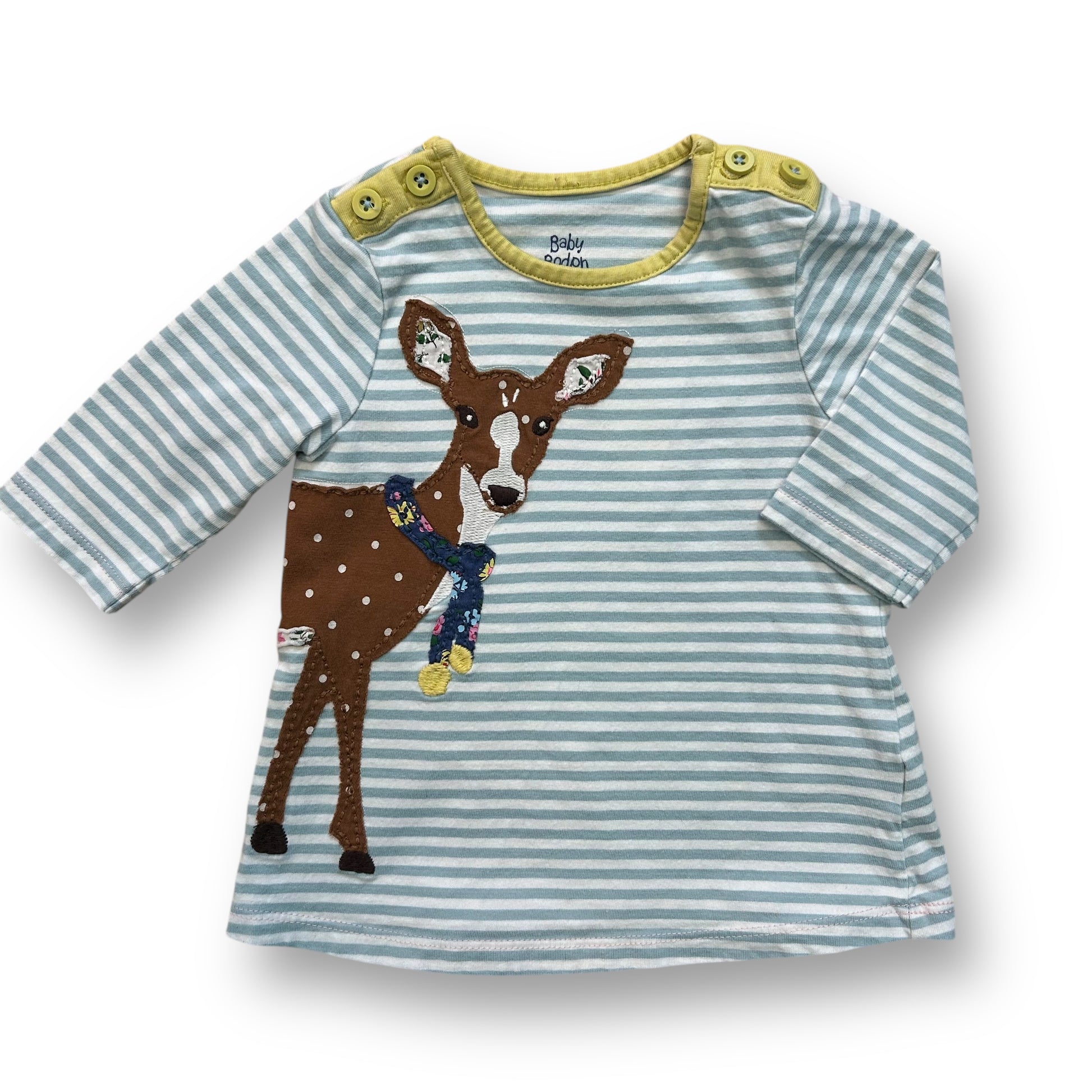 Girls Mini Boden Size 0-3 Months Blue & White Striped Stitch Reindeer Dress