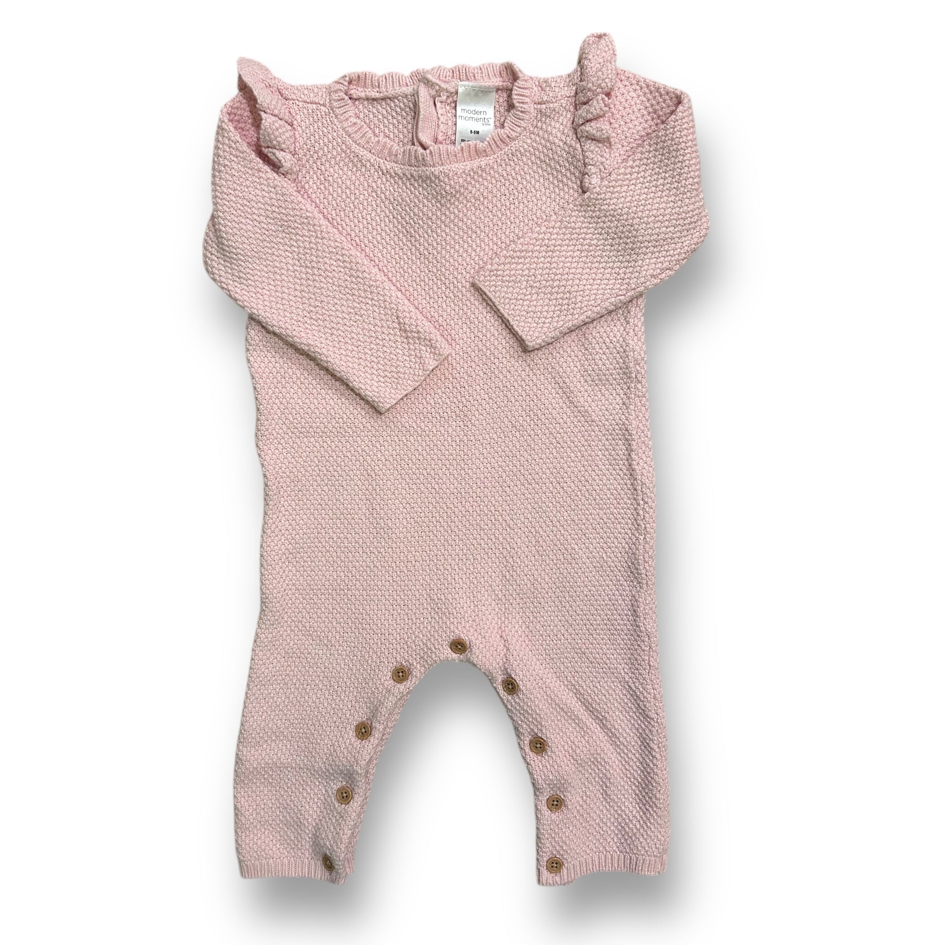 Girls Size 6-9 Months Pink Sweater Romper Dusty Rose Button One-Piece