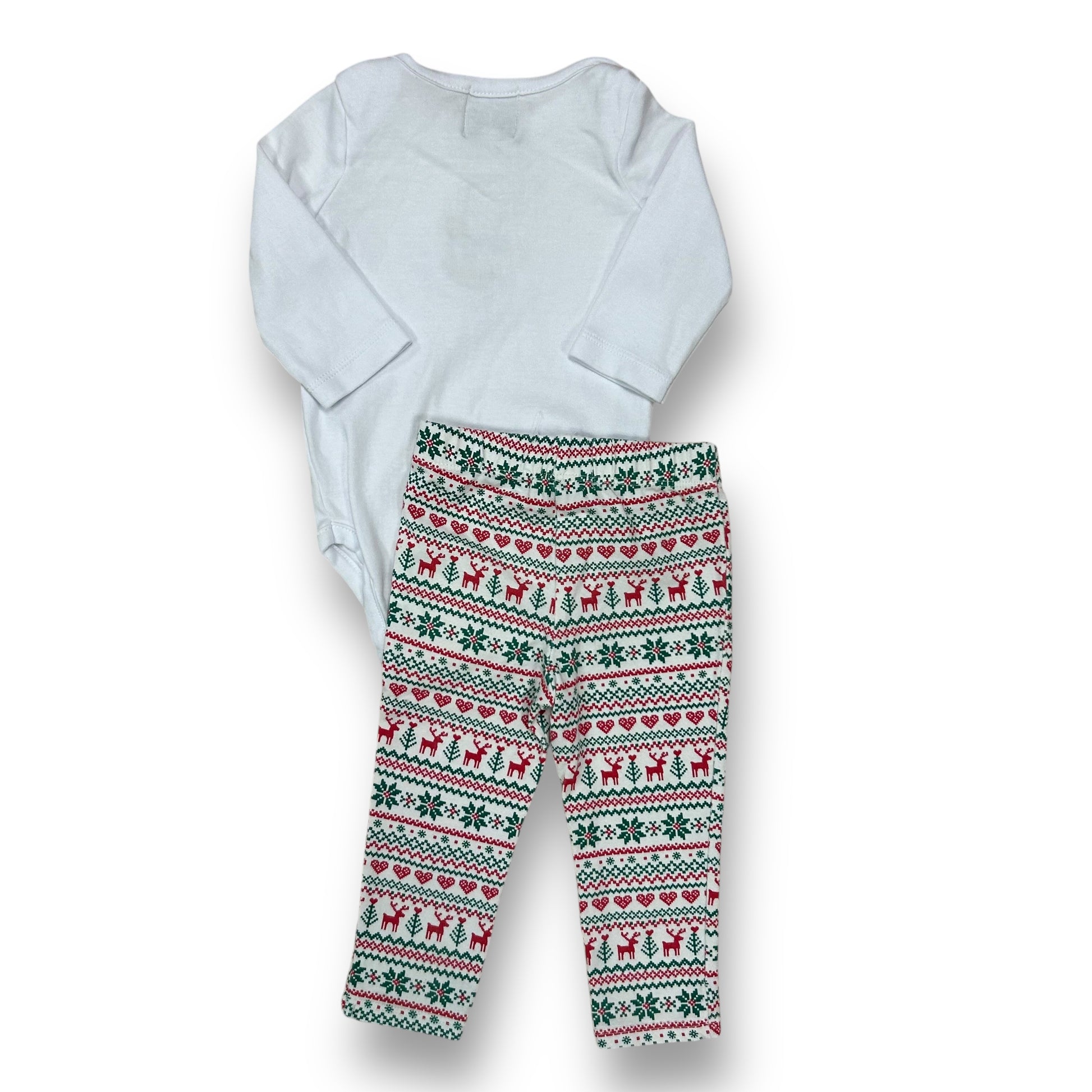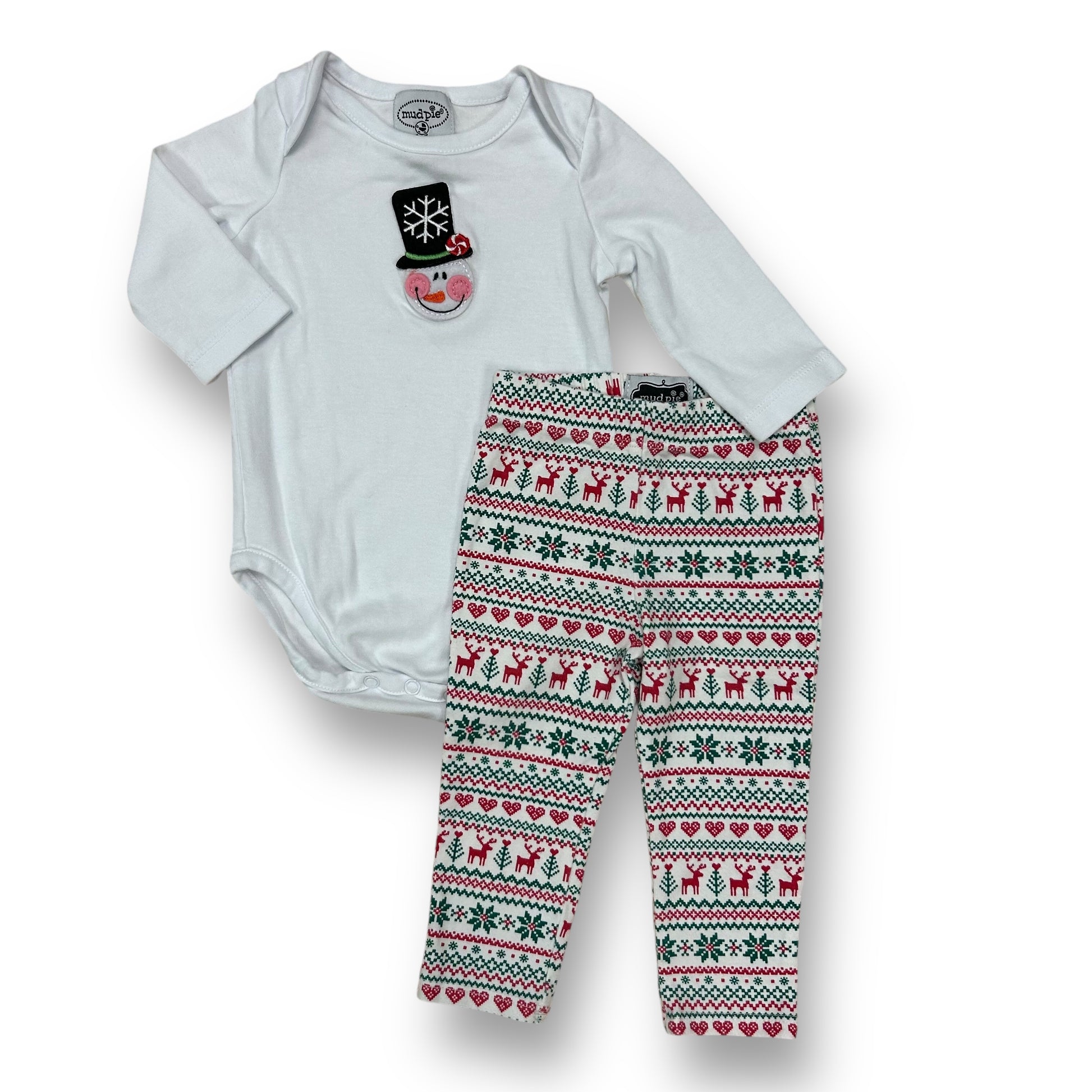 Girls Mudpie Size 0-6 Months Red & Green Snowman Snap Bottom 2-Pc Outfit
