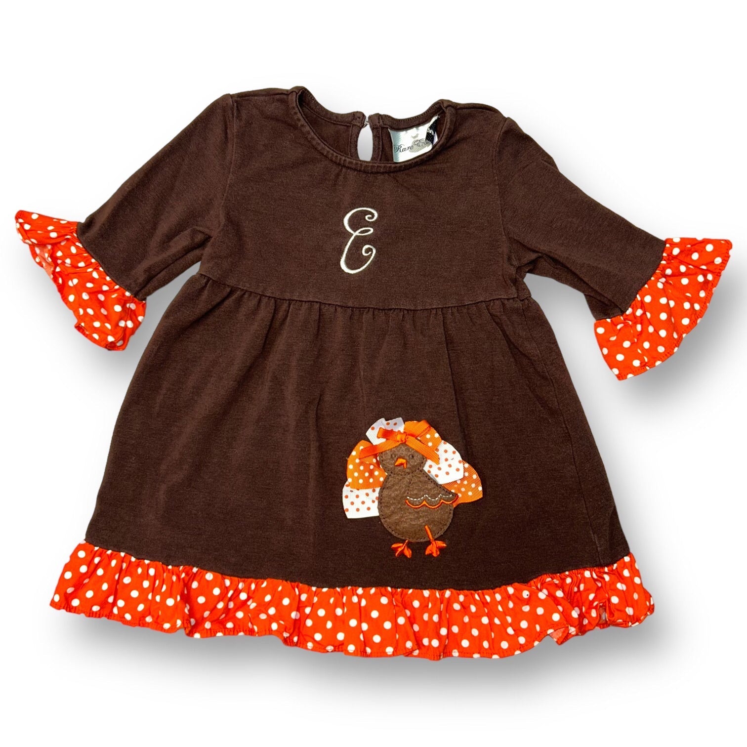 Rare Editions Girls Size 2T Thanksgiving Blouse Brown Embroidered Turkey Shirt