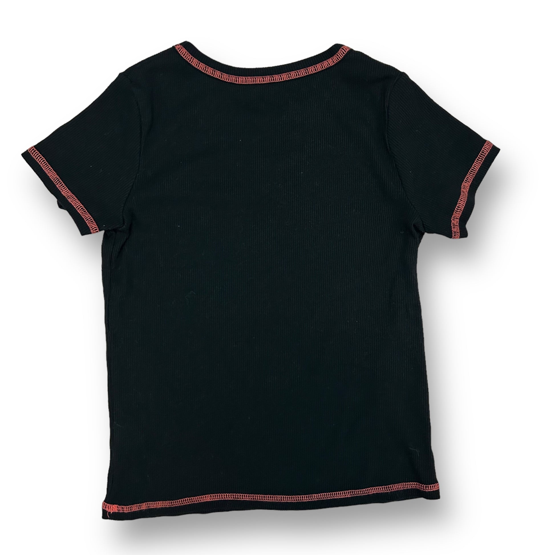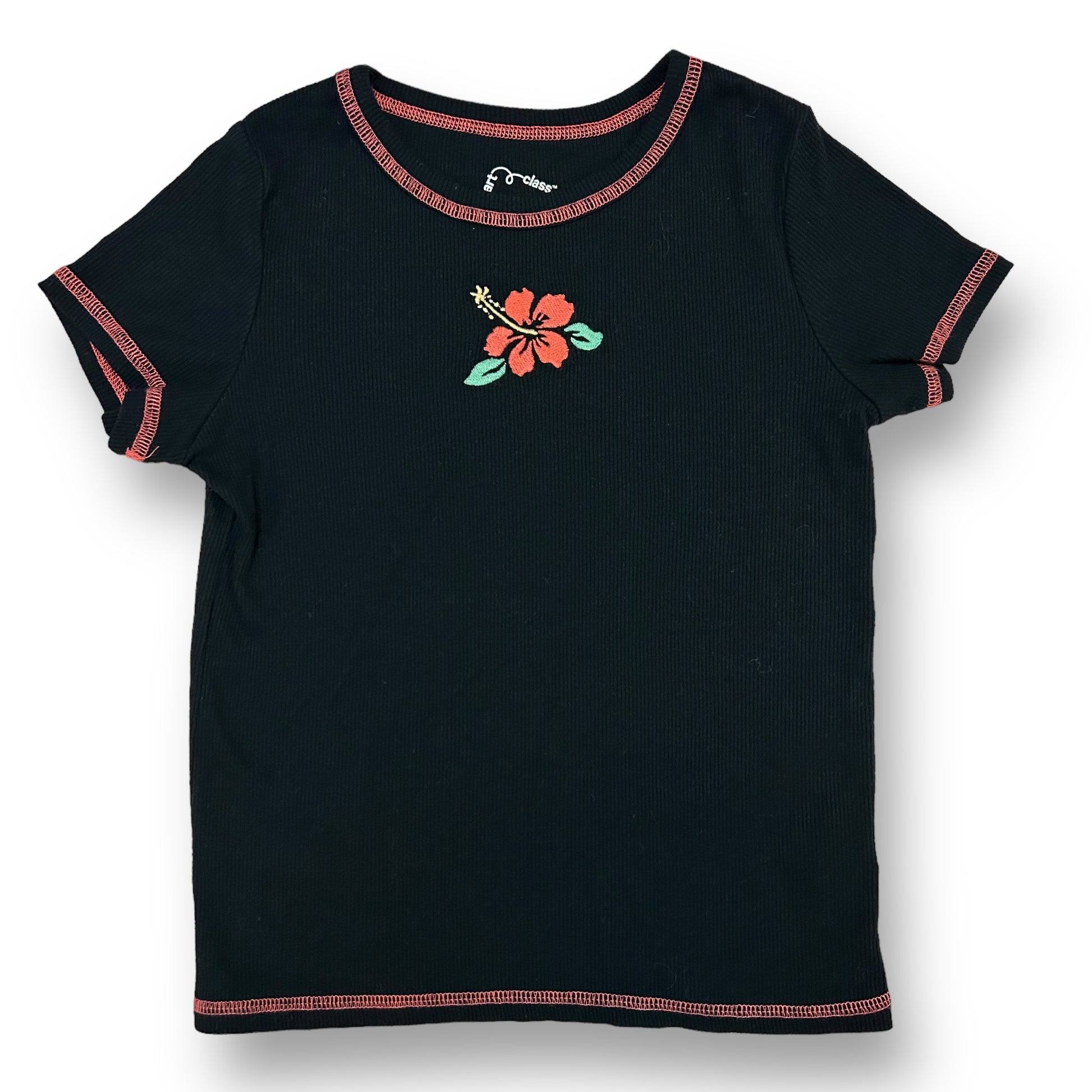 - Girls Art Class Size 10/12 Black Hibiscus Ribbed Short Sleeve Shirt