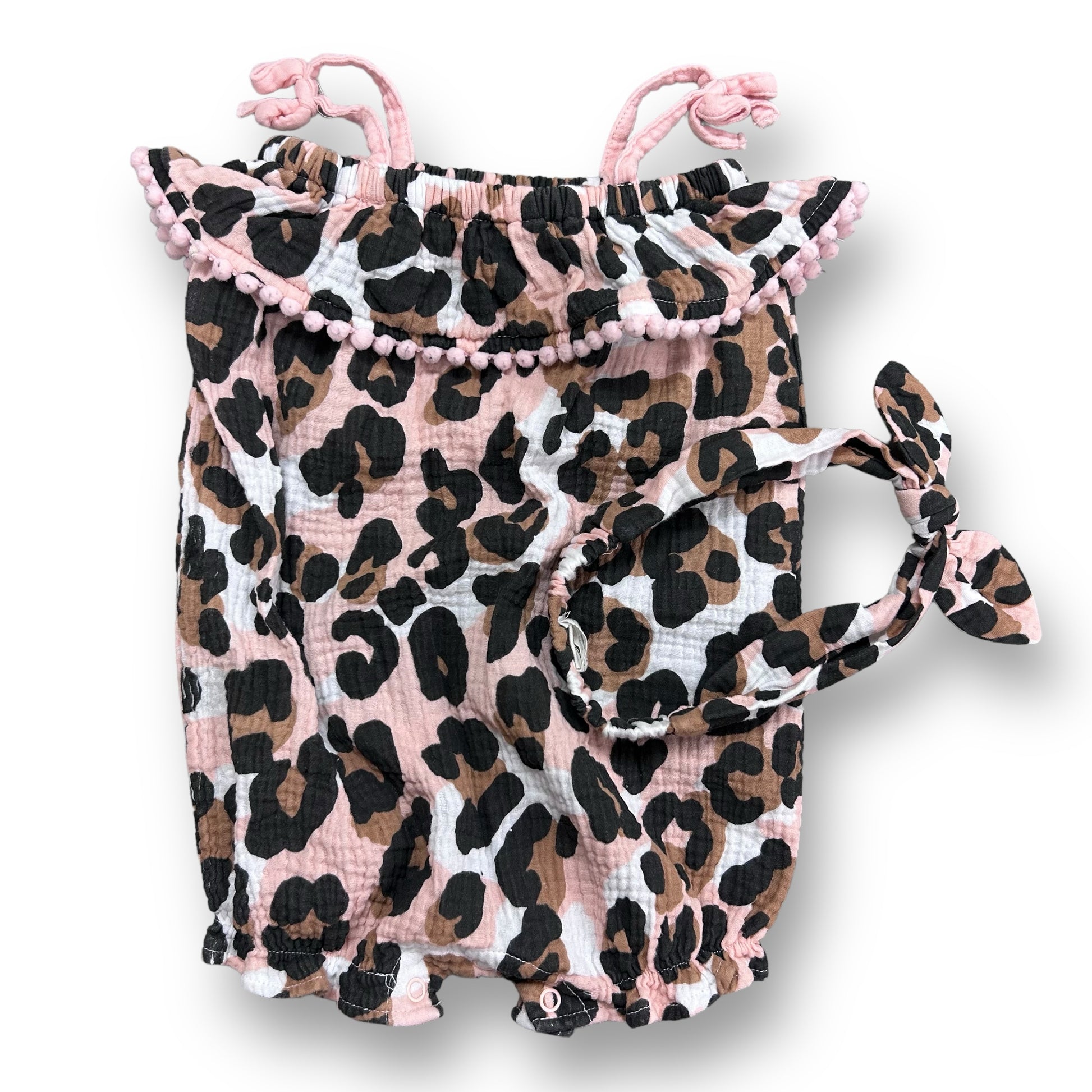 - Girls Mudpie Size 12-18 Months Pink Animal Print Romper with Bow