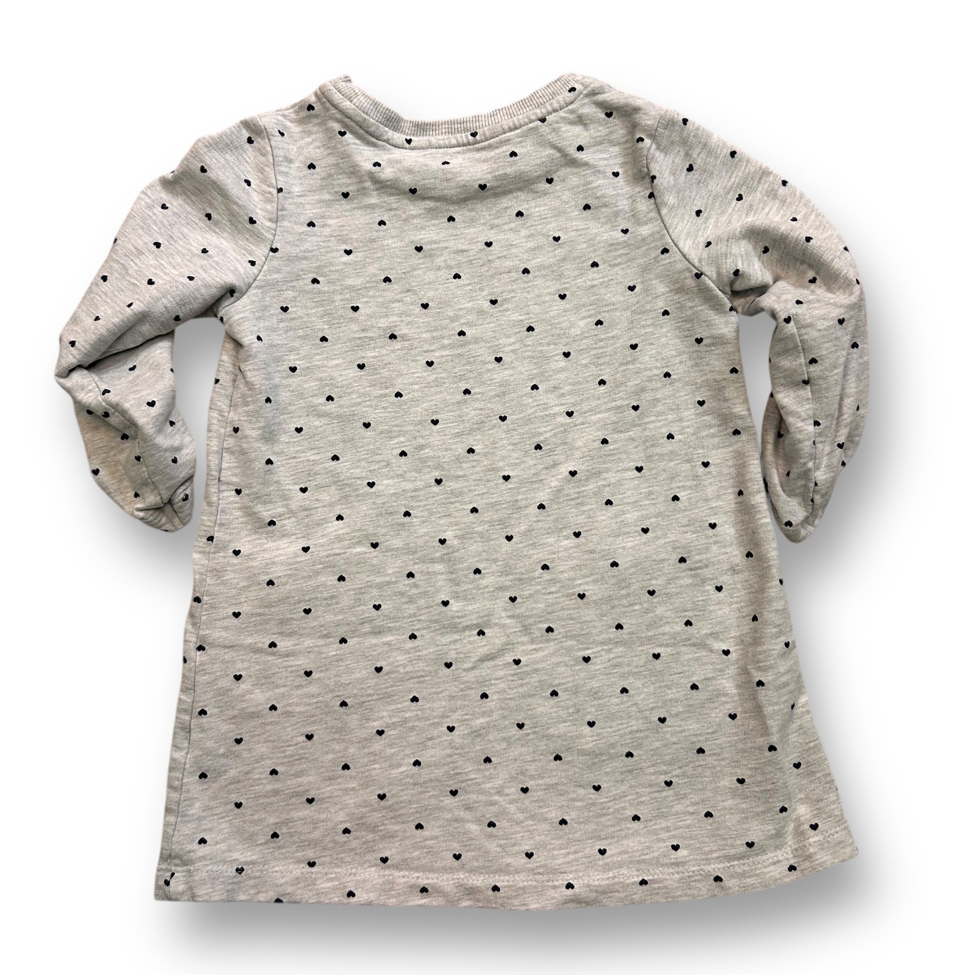 Girls Size 2/3 Toddler Gray Heart Print Long Sleeve Comfy Dress with Pockets