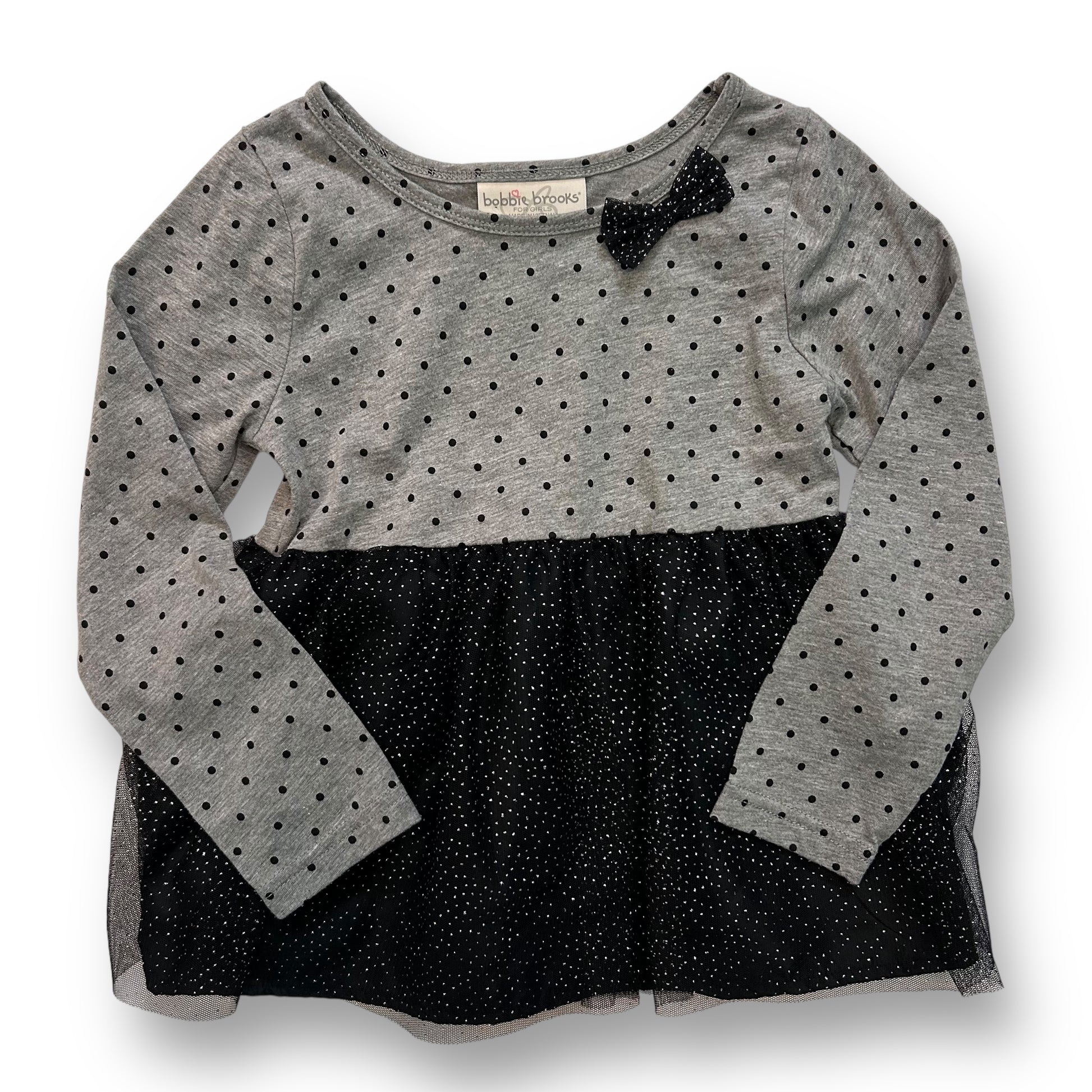 Girls Size 4/5 Black & Gray Polka Dot Tulle Accent Long Sleeve Top with Bow