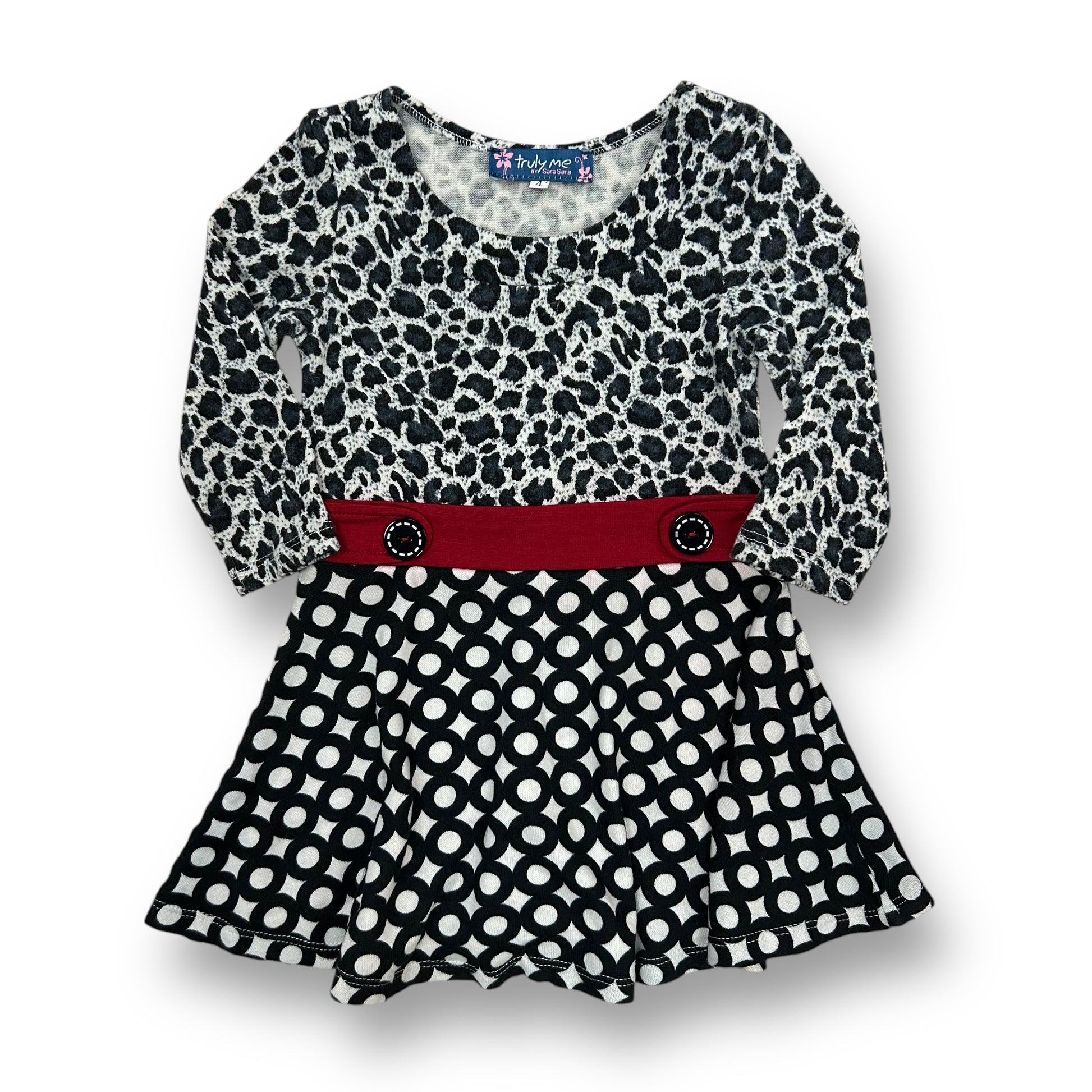 Sara Sara Girls Size 4 Black Print Belted Special Occasion Boutique Dress