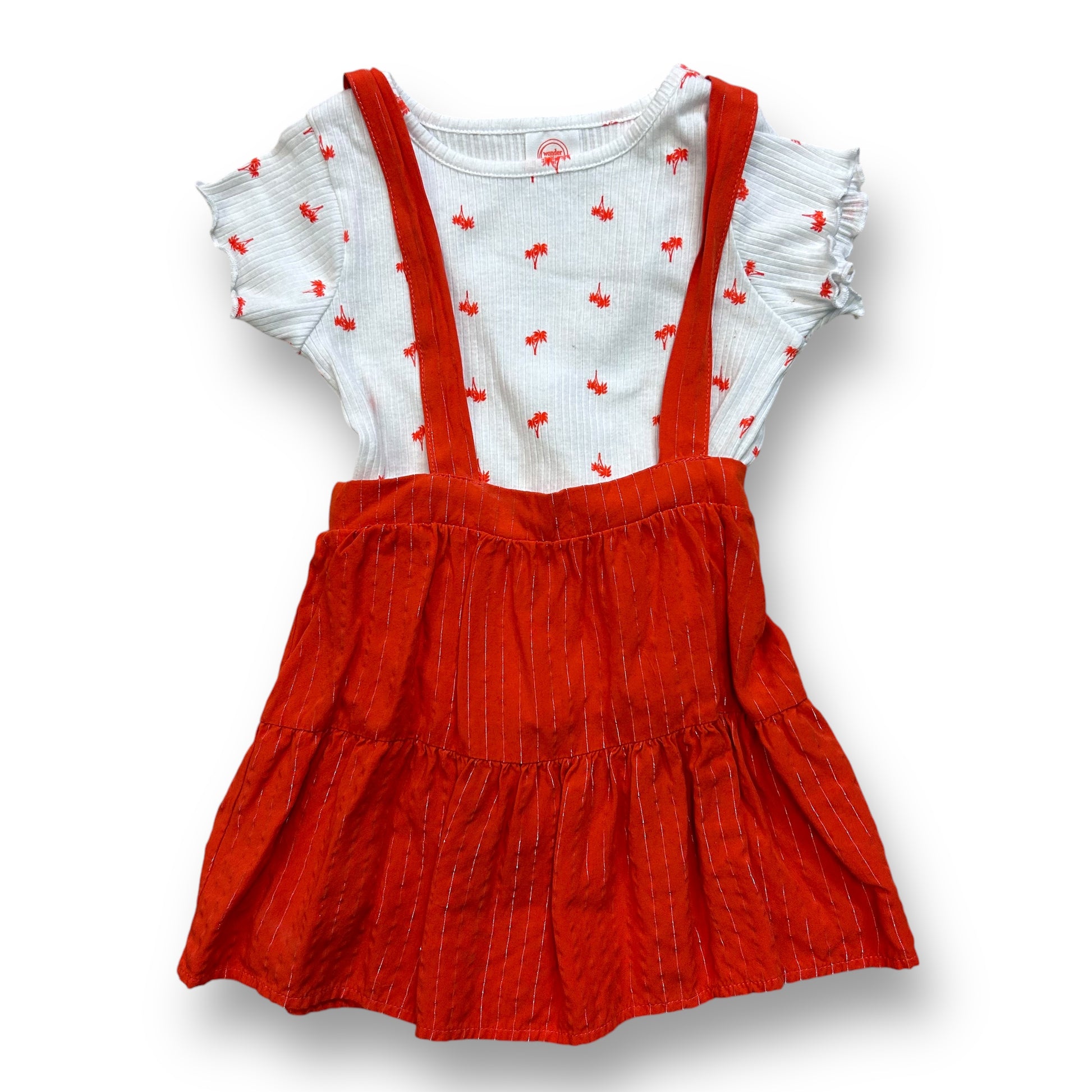 Toddler Girls Size 3T Palm Tree Print 2-Pc Orange Jumper and Short Sleeve Top