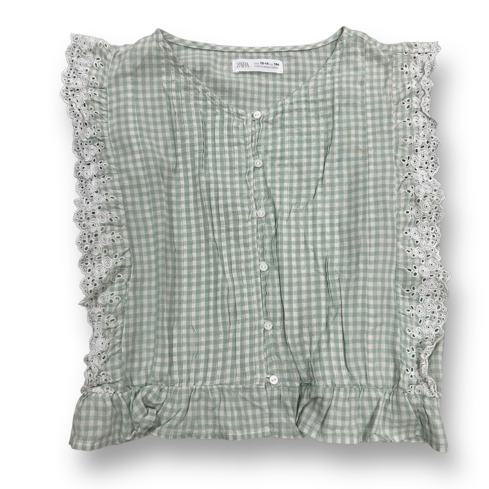 Zara Girls Size 14 Youth Sage Green Gingham Sleeveless Eyelet Lace Blouse